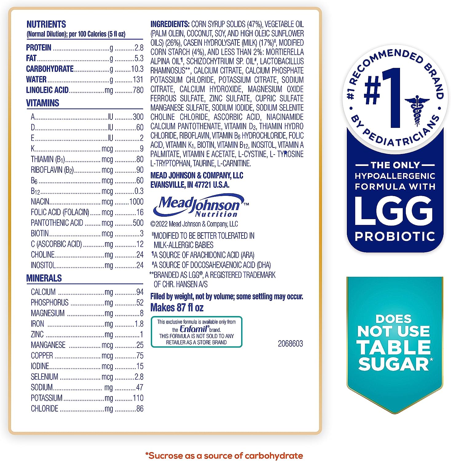 • Product 1: BRAIN SUPPORT: Nutramigen is a gentle, lactose free baby formula that has important nutrients found in breast milk such as omega-3 DHA, ARA, and choline that provide brain support